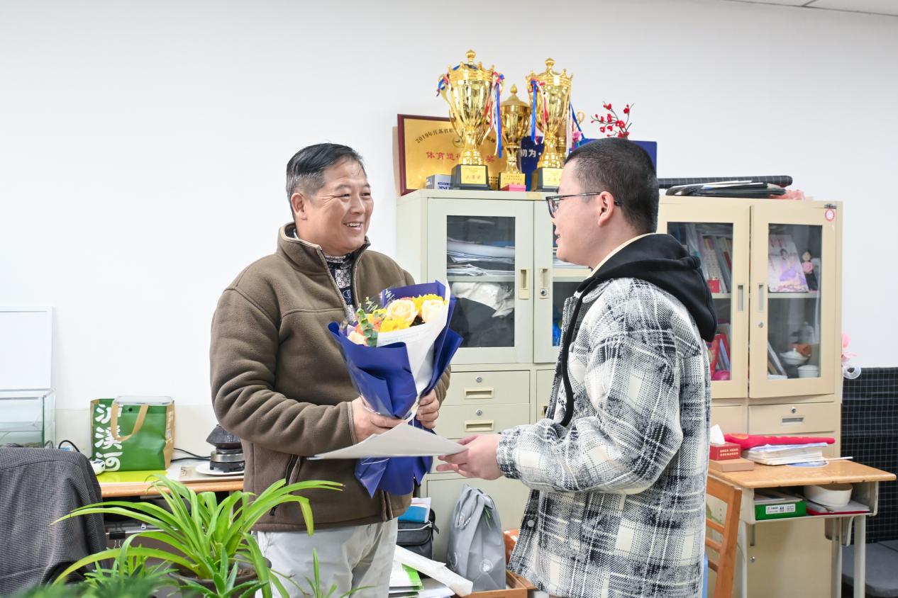 分享会前夕,周欢特意前往办公室看望昔日的班主任和授课老师,与恩师们促膝长谈。他详细讲述了留学期间的成长与蜕变,逐一展示了自己在澳大利亚获得的国家奖学金证书、桑瑞亚理工学院参赛夺冠的荣誉证书、乐卓博大学学业优异的表彰奖章,以及实习期间获评“优秀实习生”的荣誉勋章。他用实实在在的成绩回馈恩师的悉心教导,言谈间满是对老师们当年栽培与鼓励的感激,温馨的师生情谊在交谈中愈发深厚。