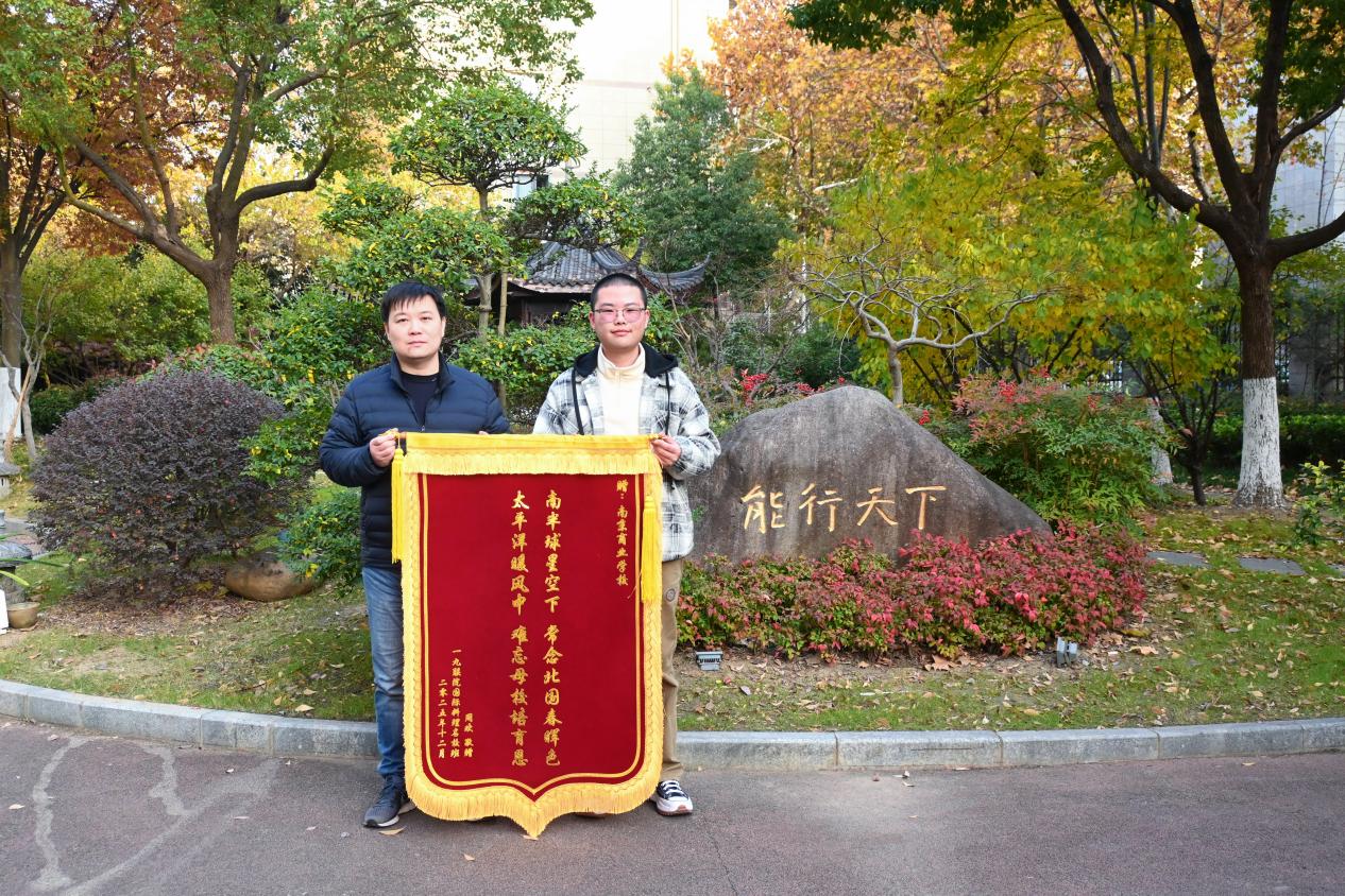 分享会接近尾声时,感恩之情达到了高潮。周欢特意定制了一面锦旗赠予母校,以此铭记栽培之恩、表达赤子之心,并与南校区分管校长翁涛、德育主任端俊、正初为国际料理名校班教学校长苏波以及昔日的班主任和授课老师们共同合影留念。镜头里灿烂的笑容中,洋溢着学子对母校的赤诚眷恋、对恩师的由衷敬意,以及母校和恩师对学子的欣慰期许,成为这场分享会最温暖的注脚。